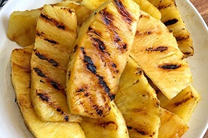 Directions: Preheat grill for medium-low heat. Cut fresh pineapple into slices or wedges. Whisk together melted butter, brown sugar and cinnamon and brush both sides of pineapple with the mixture. Place on the grill and cook for 2-3 minutes per side or until pineapple becomes tender. Optional Suggestion: Try other fruits such as strawberries, blueberries or raspberries. Cook using a grill basket to contain smaller fruits.