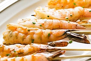 Directions: Prepare the grill for high heat. Thread peeled shrimp on the skewers and drizzle with olive oil. Add a dash a salt and place on the grill. Cook for 2 minutes per side and remove from grill. Immediately brush with melted garlic butter and serve. Optional suggestion: Spice things up by adding a few dashes of Special Formula No. 4 Hot Sauce to the garlic butter mixture.