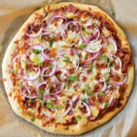 - Now you're ready for the ham, chicken, pineapple and cheese. Get creative! Design your pizza however you'd like, you can even add more cheese or chicken!