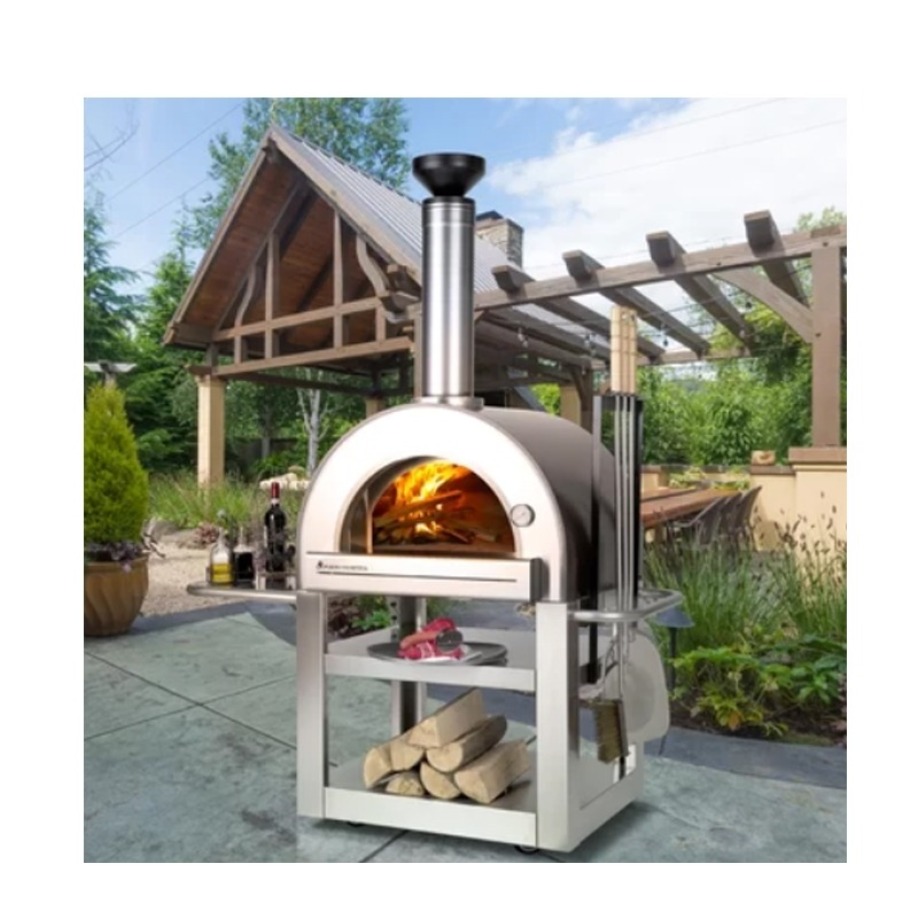 The traditional flue design which is frequently found in commercial and high quality ovens creates a draft that pulls smoke out and up the flue and chimney. Most of the heat is left inside to circulate throughout the dome, resulting in optimal heat retention and minimal fuel consumption. Additionally, Forno Venetzia ovens come ready to use- no curing process necessary- just unpack and you’re ready to go!