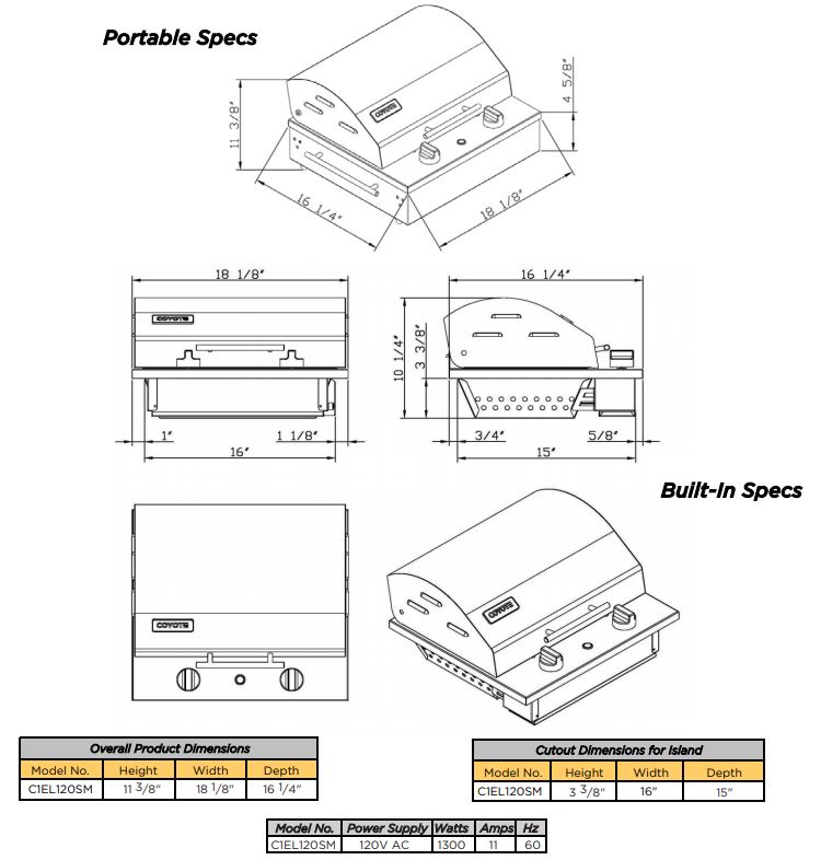 - 120 VAC – 1300 WATTS – 11 AMPS – 60 HZ