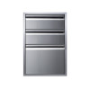 - Three storage drawers
