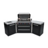 Elevate your outdoor cooking experience with the Mont Alpi 805 Black Stainless Steel Island with 45 Degree Corners. This premium island grill boasts six standard burners, supplemented by an infrared side burner and an infrared rear burner with a robust rotisserie kit that promises the ultimate rotisserie cooking. Crafted for those who appreciate the blend of style and functionality, this grill is not just a cooking device; it's an outdoor culinary station.