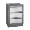 The perfect outdoor kitchen features loads of storage and a durable finish that will stand up to the elements. The OASIS Three Drawer Cabinet has stainless steel drawers with an abundance of