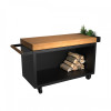 The refined black base is matched with an ample workspace, topped with a teak worktop that exudes a unique warmth and visual charm. The model also features significant under-counter storage capacity, ensuring that wood remains organized and within reach. Enhance your al fresco cooking and preparation endeavors with the chic, sturdy, and user-friendly OFYR Mise En Place Table Black 135 PRO Teak Wood Mobile Prep Station.