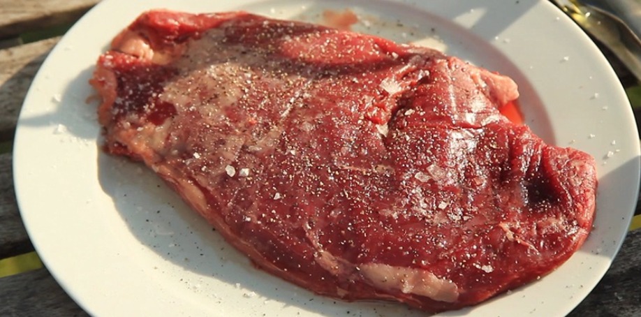 - Season the steak with a drizzle of oil, plenty of pepper and a little salt. Sear the steak on the SIZZLE ZONEâ„¢ pressing gently all over with the tongs to get maximum contact with the grill bars - a couple of minutes should do it, then turn and grill for about 3 more minutes on the other side. This should give a medium-rare steak, depending on thickness. Cook for another 30 seconds to a minute on each side if you prefer a medium to well-done steak. Turn off the SIZZLE ZONEâ„¢. Transfer steak to the warming rack above the lit burners and leave to rest while the rice finishes cooking. Brush a little sauce over the steak as it rests.