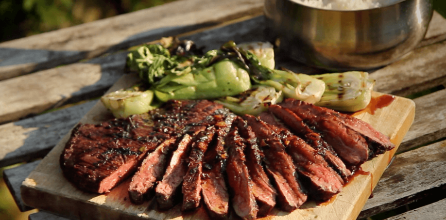 Asian Steak With Grilled Pak Choi & Ginger-Soy Dressing