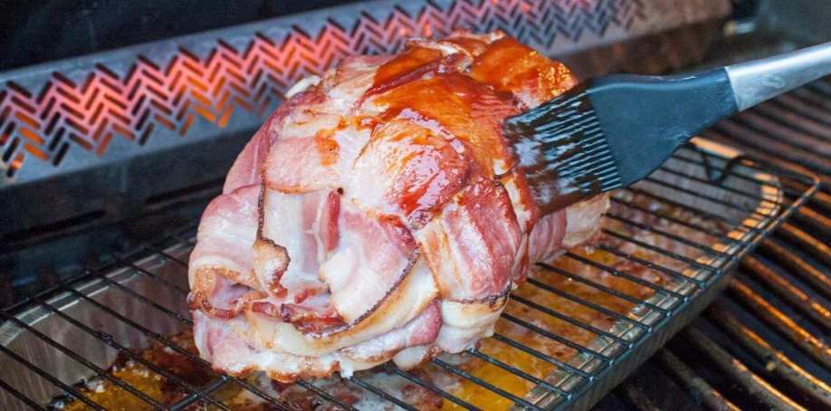 - Using the plastic wrap to help, wrap the pineapple with the bacon weave that you made. Use butcher’s twine or soaked wooden skewers to keep everything in place.