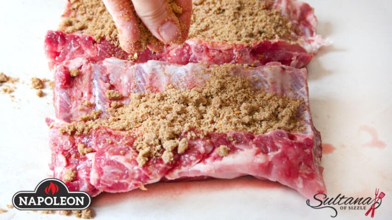 - Remove the ribs from the grill and lay them on a bed of tin foil. Dust the tops with brown sugar and honey, wrap them tightly and return them to the grill for another hour.