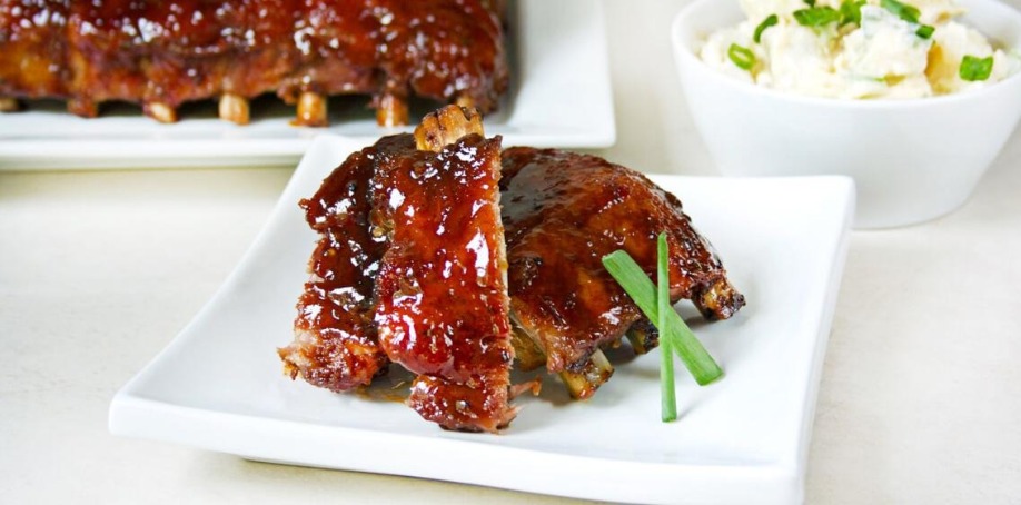 - Slice between every rib, and serve with plenty of wet wipes. Some potato salad, veggies, and dip wouldn't be a bad idea either.