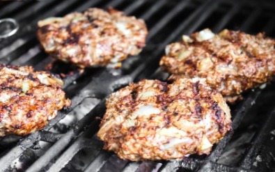 - Place patties on the grill and let cook for approximately 4 minutes, then flip. Place a slice of cheese (we like white cheddar) on each patty and continue cooking for an additional 4 minutes or until completely cooked through and cheese is melted.