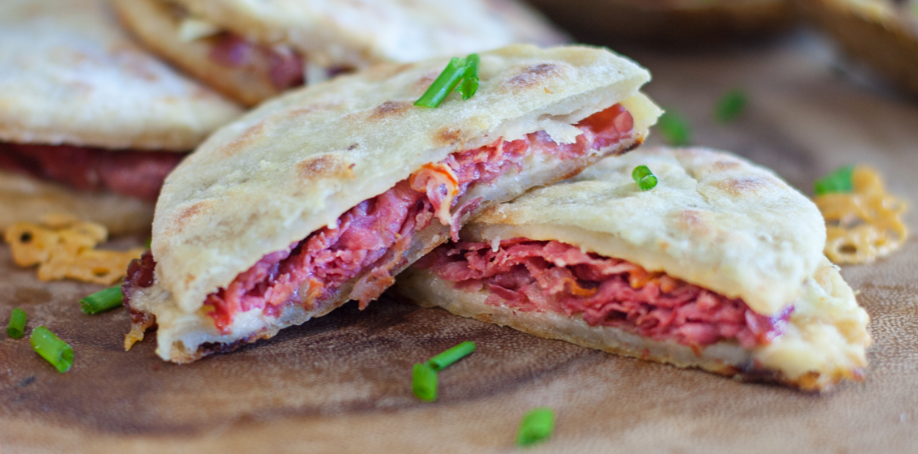 Whether you’re gearing up for a delicious St. Patrick’s Day, or want to put a fresh spin on some pub food, Irish Quesadillas are a great way to turn some heads (and taste buds). Potato farl layered with sharp Irish cheddar cheese, horseradish mayo, and fresh corned beef. You can make these to be a slider sized or large, depending on your preference.