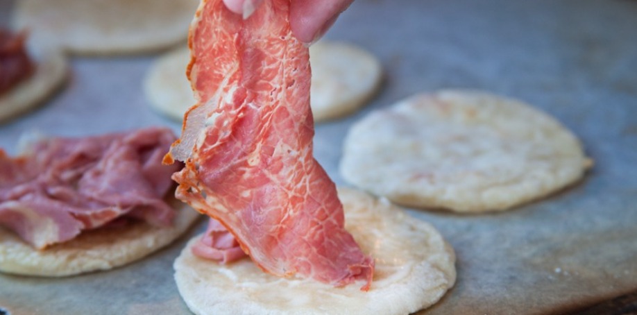 - Now that they’re browned, spread a little mayo on each potato farl round. Layer a little cheddar, meat, and more cheddar. Finally place another farl round on top. Close the lid of the grill for another 5 minutes, or until the cheese has melted.