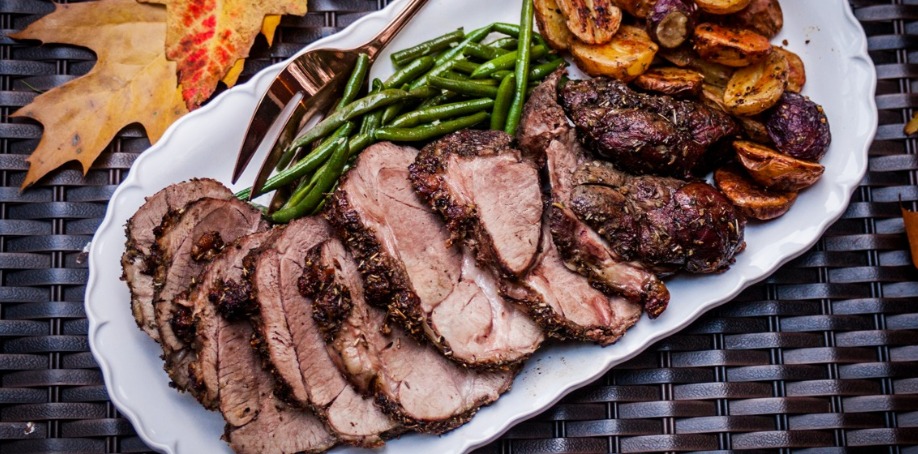 - Slice the lamb and serve with your favorite veggies, potatoes, and gravy.