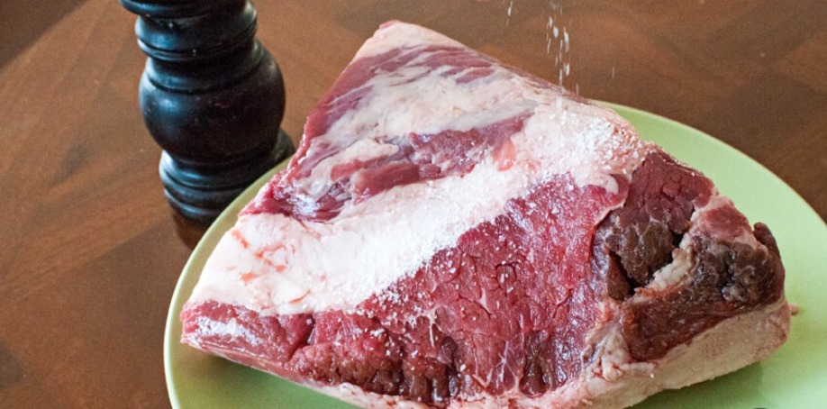 - Trim off any fat that is over ½ an inch thick. Rub the brisket on all sides with salt, pepper, and your favorite BBQ seasoning.