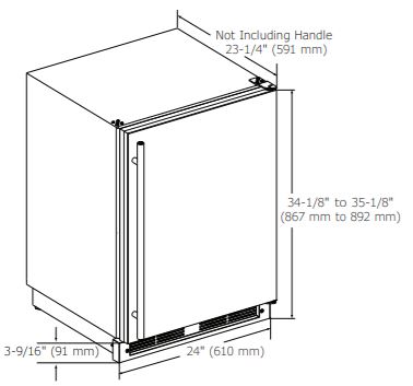 - 24" overall volume of 5.2 cu ft holds up to 123 bottles (12 oz) or 185 cans (12 oz)